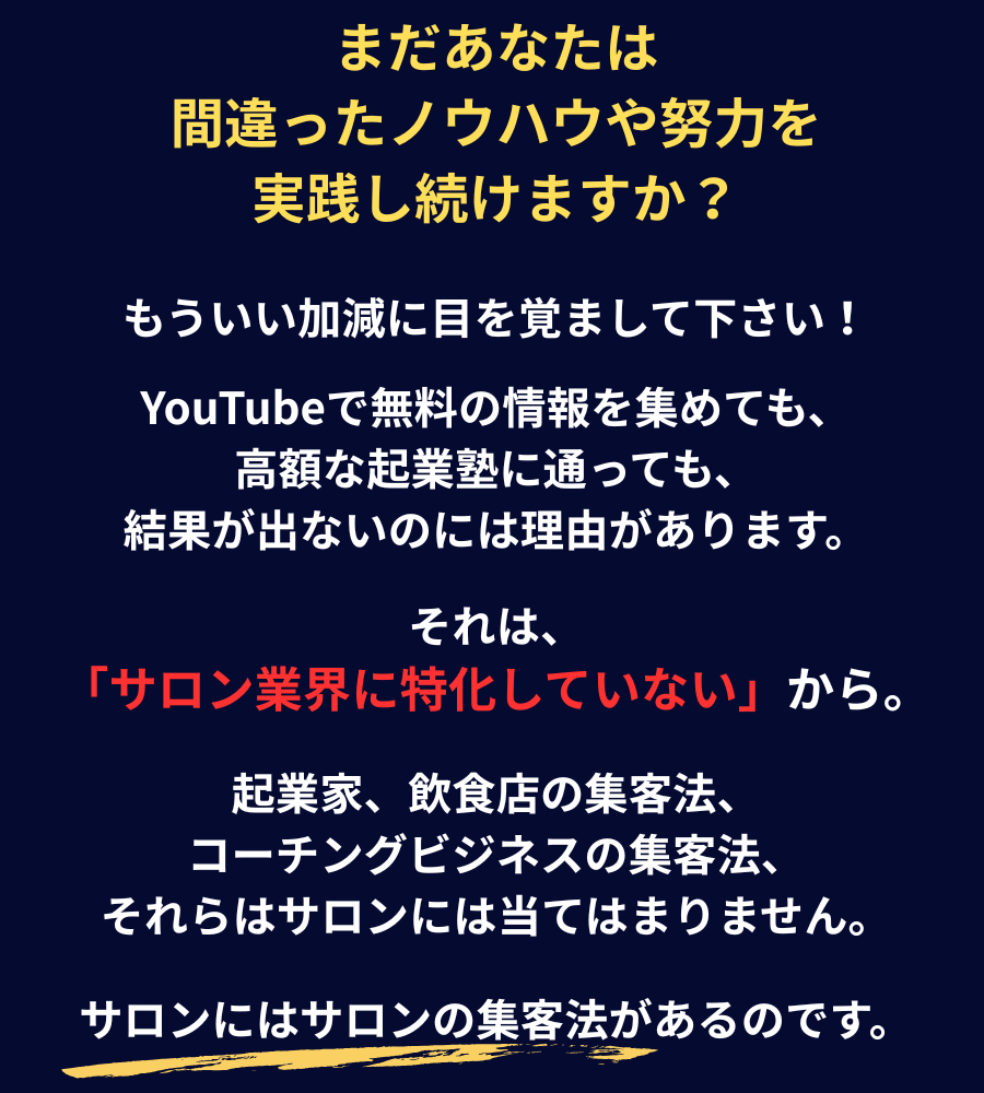 集客で悩んでいるサロンの9割は、「正しいやり方を知らないだけ」なんです。